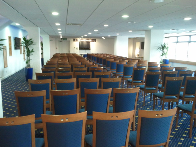 We got to hear all about their processes and how they are being innovative (sounded a bit like ESPN) with their 3D channel, Sky-Go mobile app) and their 4 channels plus Sky Sports 24 hr news channel. Sound familiar? Then we took a tour of the facilities and saw where they host their shows, news room, and control centers. I got a cook panoramic of the news room that I kinda liked.